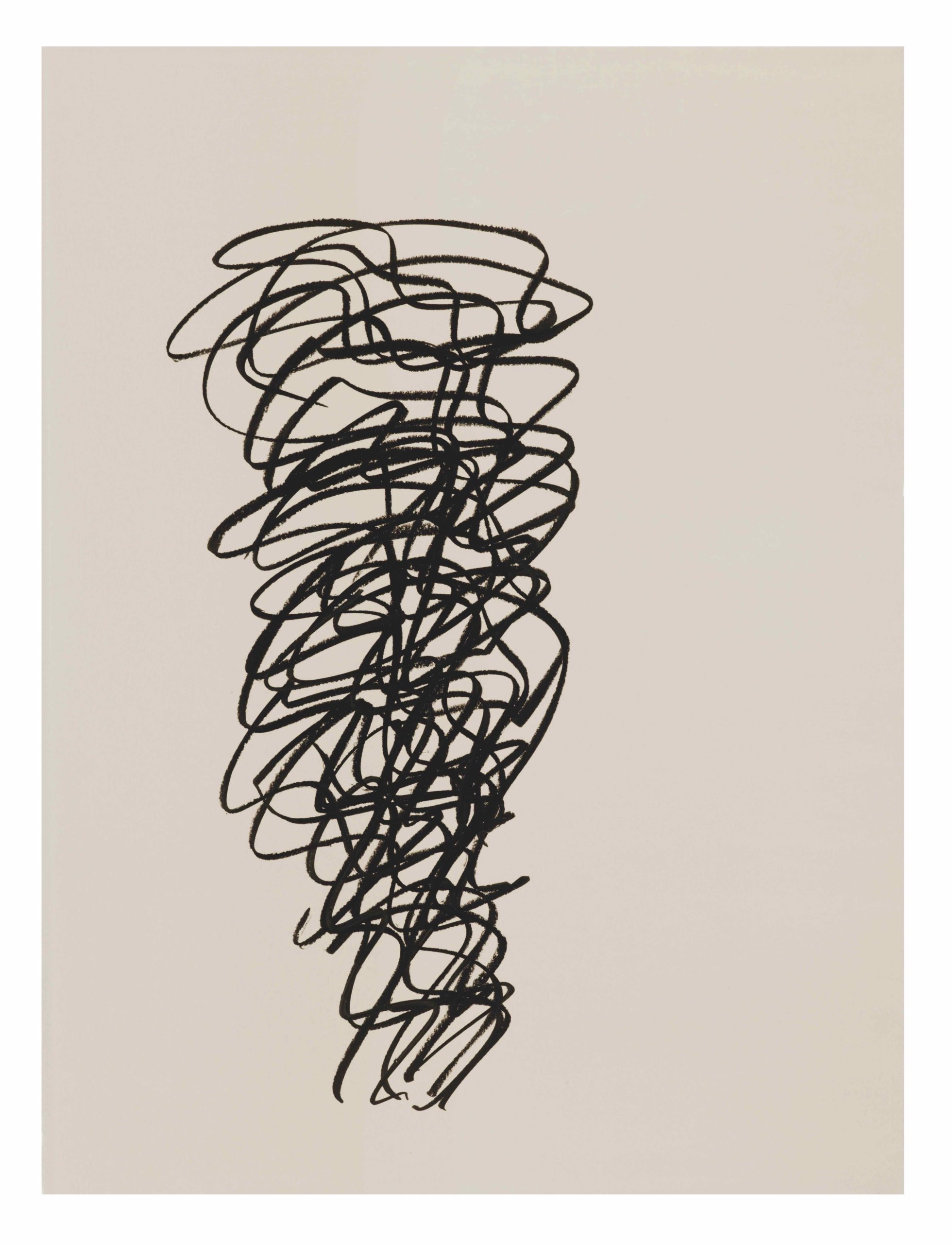 Jusqu’au 16 janvier 2026, cet accrochage réunit des œuvres courant de 2013 à 2025, sur toile, sur papier et une pièce intitulée Breath Column (la colonne du souffle), issue de sa résidence en 2018 à la Julliard School, l’école de musique, danse et art dramatique newyorkaise fondée en 1905 qui compte parmi ses anciens élèves des figures mondiales comme Yo-Yo Ma ou Miles Davis. Cette résidence donna aussi lieu à un film réalisé par Marc Kidel où elle peint au-dessus d’une table transparente : une caméra la filme en contreplongée à travers une table transparente, et on la voit créer son œuvre en réaction et en dialogue avec la musique.
