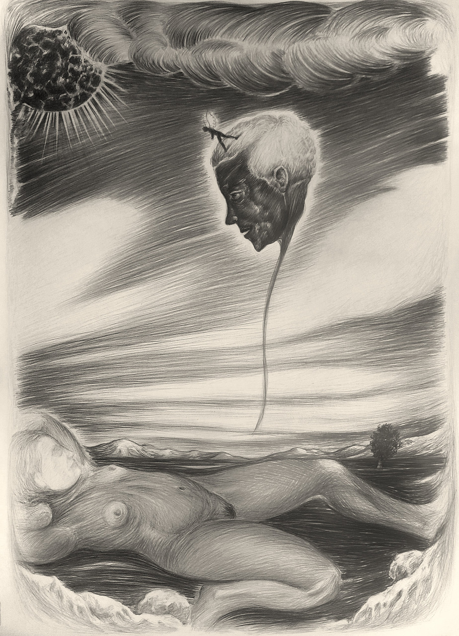 Exposé l’an dernier à « Drawing Now – Paris » sur le stand de la remarquable galerie DYS, fondée par Justine Jacquemin, rue de l’Arbre Bénit, le basque autodidacte Maldo Nollimerg (un pseudonyme) est proche de l’art brut. Les titres de ses œuvres (Lux Æterna, Phantasia, Hypnos, Le Temps magique, Vieil Océan) l’inscrivent dans le droit-fil des Symbolistes, des ésotéristes et des oniristes, à la charnière du modernisme, d’Odilon Redon à Hilma af Kint. Un artiste singulier, libre et inspiré par ses maîtres en poésie, René Char et Rainer Maria Rilke, qui plonge ses racines dans la nuit, l’obscurité astrale où nous dormons et rêvons, et notre nuit intérieure.