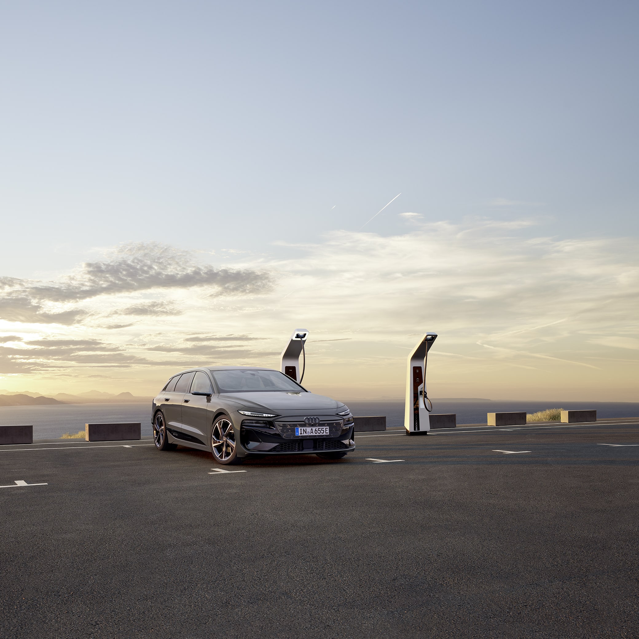 Audi was altijd al een pionier op het gebied van design, en de A6 e-tron is daarop geen uitzondering. Met zijn dynamische en vooruitstrevende carrosserie biedt de nieuwe A6 slanke lijnen en sportieve proporties die zich vertalen in een uitzonderlijke luchtweerstandscoëfficiënt van slechts 0,21 voor de Sportback. Details zoals het omgekeerde Singleframe-radiatierooster en de virtuele buitenspiegels van de tweede generatie getuigen van de nauwgezette aandacht voor aerodynamica en stijl. Het palet is verkrijgbaar in acht exterieurkleuren, waaronder metallic en parelmoer tinten zoals Typhoon Grey Metallic en Mythos Black Metallic, die het premium karakter van de auto verder benadrukken.