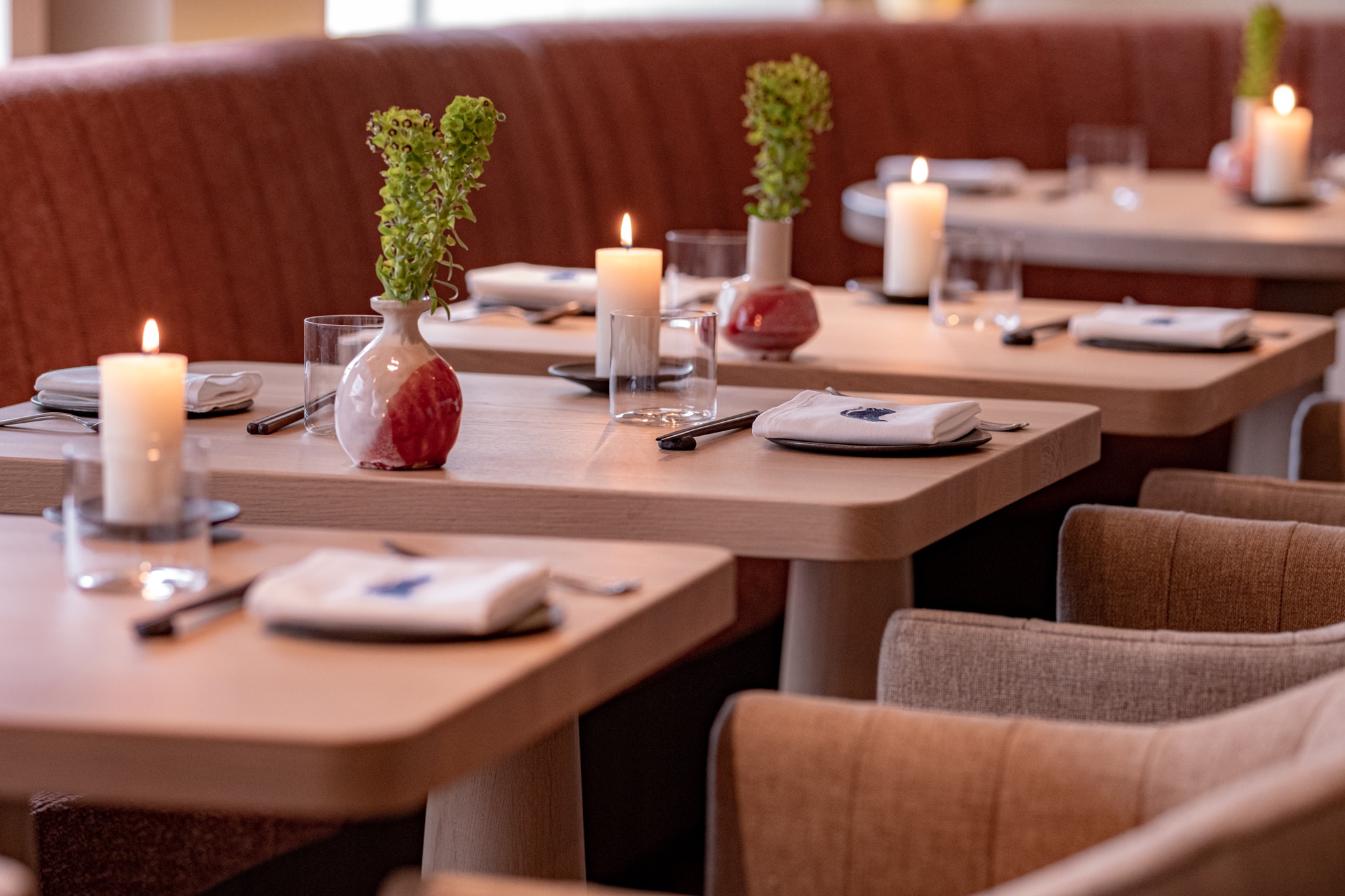 Terug meer in het centrum, biedt Blueness van Sergio Herman een verfijnde setting voor zakelijke lunches met een Aziatische kaart. Dit restaurant is namelijk Sergio’s interpretatie van Izakaya, een informele Japanse eetervaring, onder leiding van Chef Jaclyn Kong en Maître Dorine Van den Eynde. De levendige energie van de open keuken verbindt gasten met een culinaire show die zich voor hun ogen afspeelt, waardoor het restaurant een goede omgeving is om zakelijke gesprekken op gang te brengen. Daarnaast biedt het stijlvolle interieur, ontworpen in samenwerking met het Deense Space Copenhagen, een harmonieuze balans tussen sereniteit en de bruisende sfeer van de stad. Nog meer gespreksstof nodig? Er is ook hedendaagse kunst te bewonderen van Destroyers Builders, Germans Ermics, Mae Engelgeer, Verilin en Valentin Loellmann, dus een beetje research op voorhand zal je kunnen helpen aan tafel.