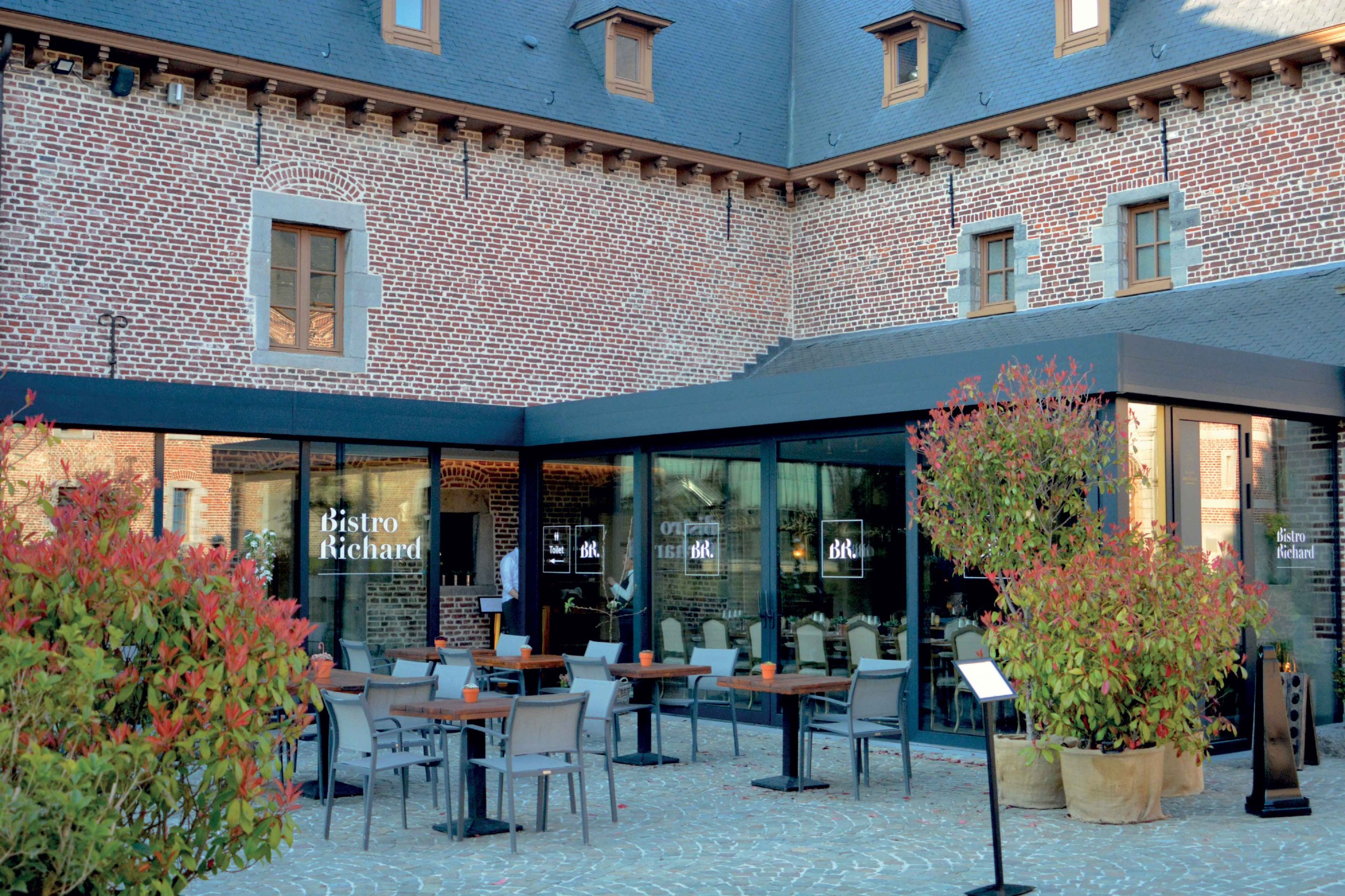Het eeuwenoude kasteel van de heren van Ordingen ligt verscholen tussen de boomgaarden, vlak bij Sint-Truiden. Zodra de lente in het land is, komen veel wandelaars er graag langs om iets te drinken op het terras van Bistro Richard, de brasserie op het binnenplein van de onlangs smaakvol gerestaureerde commanderij, nadat ze hun wagen hebben achtergelaten op de ruime, met bomen omzoomde parking.