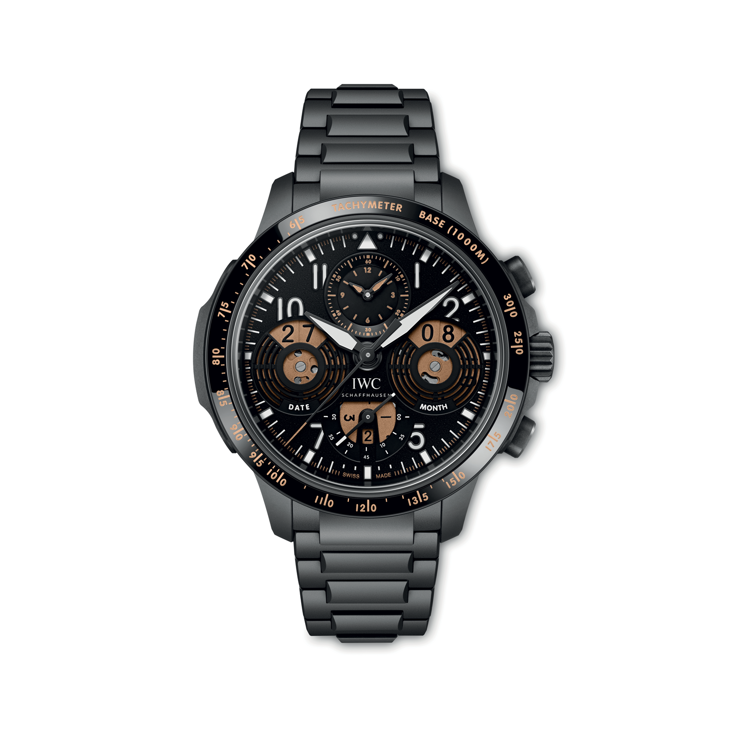 “F1 The Movie is niet zomaar een racefilm”, vertelt Christoph Grainger-Herr, CEO van IWC. “Hij is synoniem met meerdere primeurs in de filmwereld. Zo zijn de scènes voor het allereerst opgenomen met echte raceauto’s, tegen de achtergrond van daadwerkelijke Formula 1-races. Toen ze begonnen met de opnames voor de film met Lewis Hamilton (als producent en zijn teambaas Toto Wolff als adviseur nvdr) was een van de eerste opmerkingen vanuit de racegemeenschap dat alle Formule 1-films er tot dan toe te traag uitzagen. Een regisseur als Joseph Kosinski, die veel waarde hecht aan realisme, hoefde dat maar één keer te horen om direct uit te zoeken hoe hij de F1-wagens in de film tegen echte snelheden kon laten racen en zo het gewenste effect bereiken. Uiteindelijk koos hij, samen met filmproducer Jerry Bruckheimer, voor Formule 2-auto’s waarop een Formule 1-carrosserie werd gemonteerd. Deze wagens worden bestuurd door zowel acteurs als stuntcoureurs en rijden op aanzienlijk hogere snelheden dan ooit tevoren. Een noodzaak gezien sommige filmopnames tussen de echte Grand Prix races door in slechts acht à negen minuten voltooid moesten worden. Enkele filmscènes werden opgenomen meteen na de officiële podiumceremonie van de Grand Prix van Abu Dhabi waardoor acteurs zoals Brad Pitt en Javier Bardem samen met echte coureurs als Charles Leclerc en George Russell op het podium stonden. Dit alles gebeurde voor hetzelfde publiek dat kort daarvoor de prijsuitreiking had bijgewoond, wat zorgde voor een naadloze overgang tussen fictie en realiteit.”